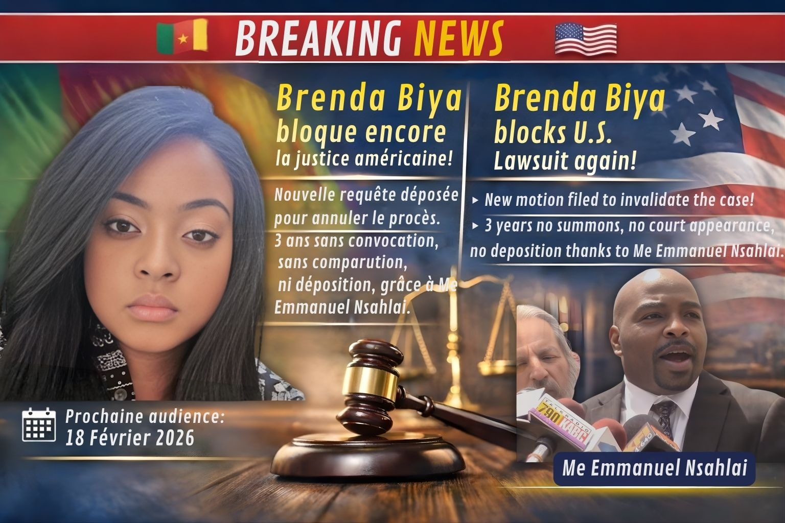 Acharnement judiciaire contre Brenda Biya à Los Angeles : son collège d’avocat conduit par Me Emmanuel Nsalai bloque toute tentative