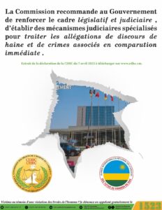 Face à cette réalité alarmante, la Commission appelle le gouvernement à renforcer le cadre législatif et judiciaire pour traiter les allégations de discours de haine et de crimes associés. Elle recommande également d’établir des mécanismes judiciaires spécialisés pour une réponse rapide et efficace à ces problématiques.