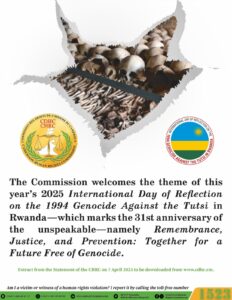Profitant de la commémoration de la Journée internationale de réflexion sur le génocide des Tutsis au Rwanda, la CDHC, dans un communiqué en date du 7 avril, déplore la persistance des conflits intercommunautaires dans plusieurs régions du pays, exacerbés par des rivalités historiques et des difficultés d’accès aux ressources naturelles.