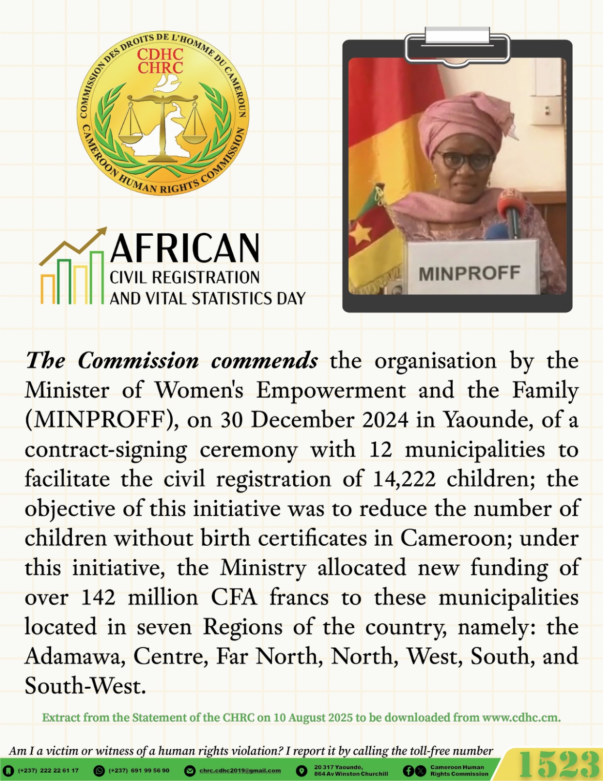 Actualités Société Au Cameroun, faits d’état civil : La CDHC plaide pour... À l’occasion de la 8e édition de la Journée africaine de l’enregistrement des faits d’état civil, la Commission des Droits... BY PANELS_HEBDO 11 August 2025 0 Comments
